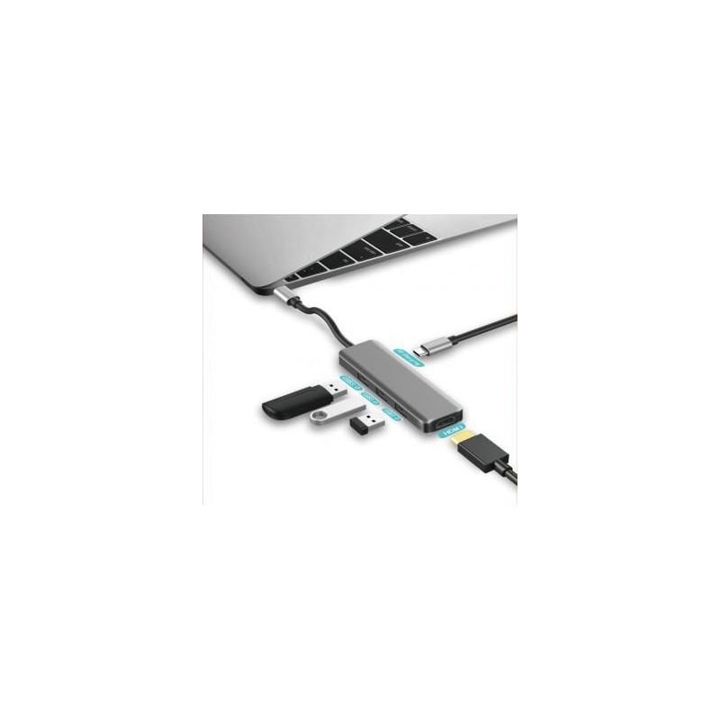 O adaptador 5 em 1 USB-C pa Hub HDMI/AUX/USB 3.0/Ethernet é um dispositivo versátil e prático que permite expandir as funcionalidades de um computador ou dispositivo móvel com porta USB-C. Com este adaptador. é possível conect facilmente diversos dispositivos adicionais. tornando-o ideal pa quem precisa de mais portas e funcionalidades em um único dispositivo.