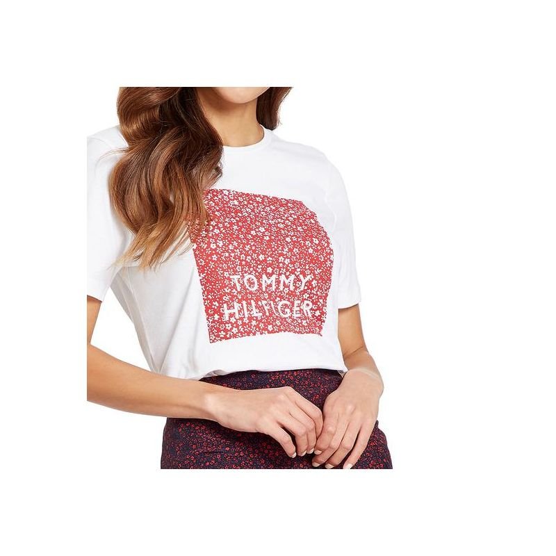 Camiseta Tommy Hilfiger Feminina Ww0Ww26661 02S 000 Áudio M Branco Tmmy Flo