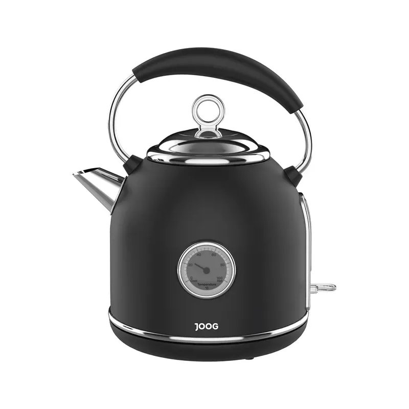 Chaleira Elétrica Joog Kettle Lux JG-L1 Transforme sua cozinha com a praticidade e sofisticação da chaleira elétrica Joog. Com 1,7 litros de capacidade, base rotativa de 360° e 1850W de potência, ela aquece a água rapidamente e com estilo. Capacidade ideal: 1,7L Base giratória 360° para mais comodidade Aquecimento ágil com 1850W de potência Janela vertical de nível de água para maior controle. Inclui filtro de água e proteção contra superaquecimento para mais segurança e pureza. Design elegante em preto fosco com detalhes prateados, e um termômetro analógico integrado que dá um toque retrô sofisticado. Facilidade e perfeição na sua rotina!