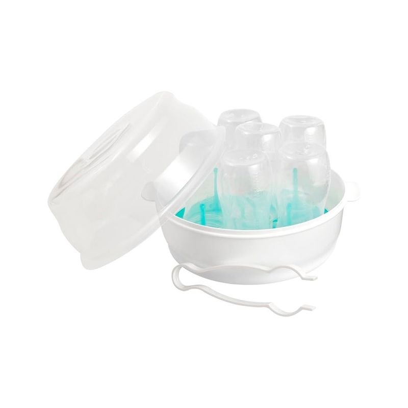 O Esterilizador de Micro-ondas da Buba garante praticidade e segurança na higienização de mamadeiras, bicos e chupetas, esterilizando em poucos minutos com vapor; possui uma bandeja de fácil remoção, pinça para evitar contato com a água quente e um design compacto, ideal para levar em viagens.