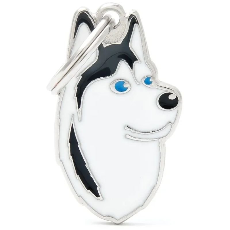 Medalha de Identificação MyFamily para Cães Husky Siberiano Preto e Branco MF13