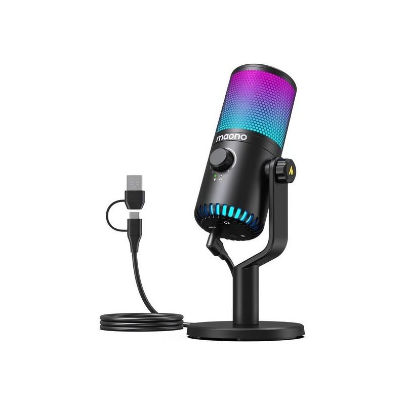 Microfone Gamer Maono DM30 RGB USB-C/USB-A com Iluminação LED – Preto