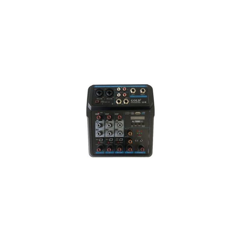 Mixer de Áudio Profissional 4 Canais Gold U4