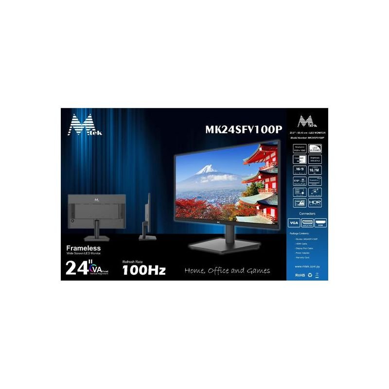 Monitor Mtek 24” Full HD HDMI VGA Preto 100Hz – MK24SFV100P VA