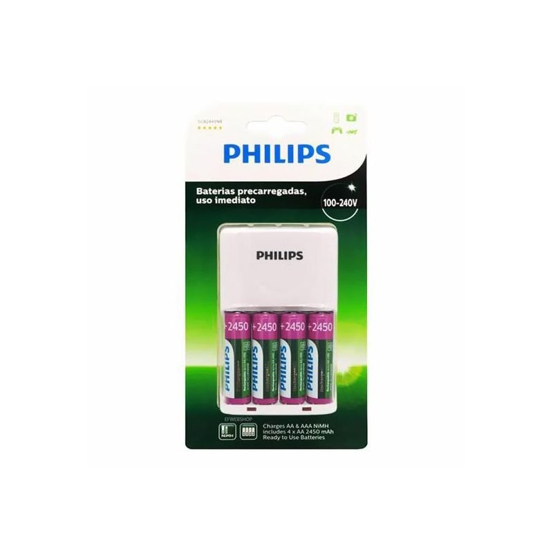 Recarregador De Pilhas Philips Com Bateria Recarregável – Scb2445Nb