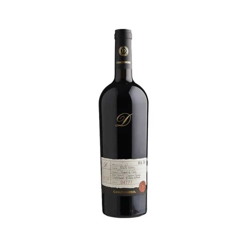 “D é o resultado do melhor do nosso Domínio. Vinhas com uma longevidade média de 70 anos, aliadas a refinadas técnicas enológicas, permitem-nos produzir um excelente lote, que reflecte um dos terroirs mais emblemáticos do Vale do Maule.” Composição: Cabernet Sauvignon 40% / Carmenere 30% / Malbec 20% / Cabernet Franc 10%. Envelhecimento: 100% por um período de 24 meses em barricas francesas. Harmonização: Recomenda-se servir com carnes magras assadas ou grelhadas. Massas, comidas condimentadas e queijos maduros apresentam um acompanhamento agradável. Notas de degustação: Casa Donoso D tem uma cor vermelho-púrpura intensa e definida. Nos seus aromas destacam-se os frutos vermelhos e pretos, como groselha preta, amora silvestre e cerejas. Em segundo lugar, estão as especiarias, como pimenta preta e tons florais suaves. Apresenta um subtil tostado produto do seu envelhecimento em carvalho francês. Na boca é harmonioso, com estrutura média e taninos sedosos. O seu final é elegante, perfumado e persistente.